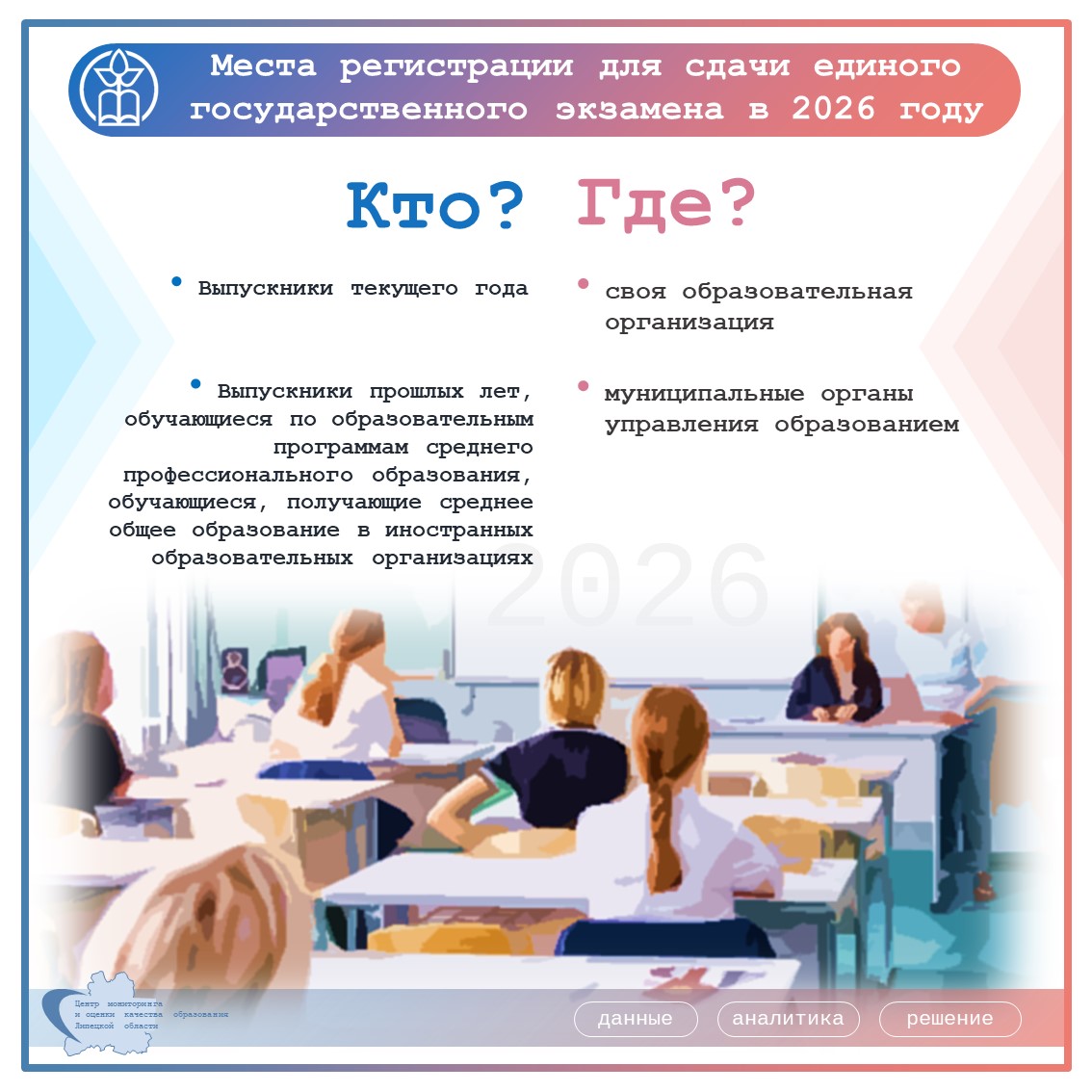 Приказом министерства образования Липецкой области утверждены места регистрации для сдачи единого государственного экзамена в 2026 году.